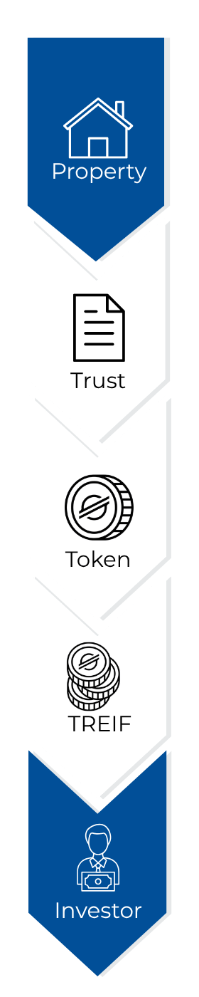 A TREIF transforms traditional real estate investments into digital security tokens on the blockchain. These tokens represent ownership shares of private commercial real estate properties.